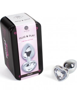 SECRET PLAY - METAL BUTT PLUG CORAZÓN TRANSPARENTE TALLA S 7 CM