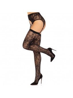 LEG AVENUE - MEDIAS ENCAJE & LIGUERO NEGRO