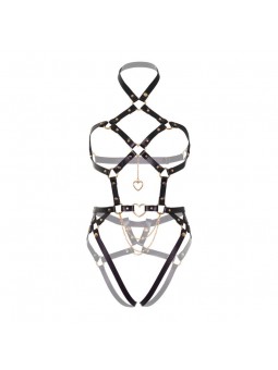 LEG AVENUE KINK HEART RING HARNESS TEDDY SIZE S - BLACK