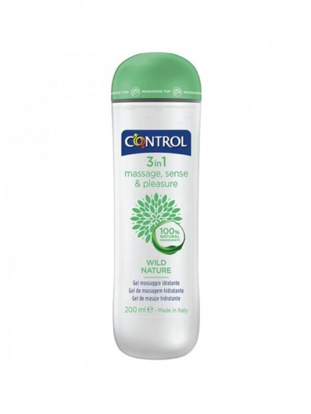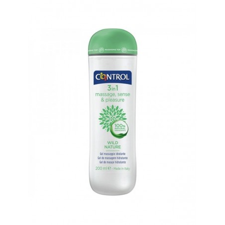 Control Wild Nature 3 en 1 es un gel de masaje hidratante que contiene un 99,4% de ingredientes de origen natural.