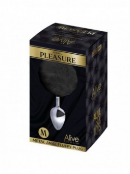 El remate del plug es lo que hace que este juguete sea especialmente llamativo: un pompón de pelo sintético de color negro, que agrega un toque juguetón y estético a la experiencia. Este detalle visual no solo añade un elemento lúdico al juguete, sino que también proporciona una textura suave y agradable al tacto, añadiendo otra capa de estimulación sensorial.