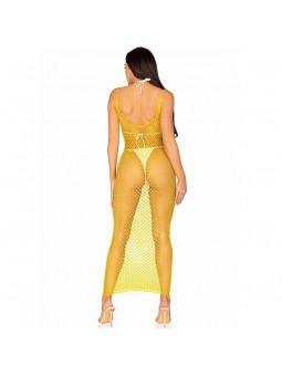 LEG AVENUE - VESTIDO DE REJILLA LARGO AMARILLO TALLA ÚNICA