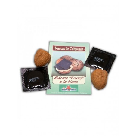 Contiene 2 nueces con un preservativo dentro para regalárselo a tu amigo o amiga en plan de ligue o broma. Son muy divertidos. Las nueces están muy bien conseguidas, parecen reales.