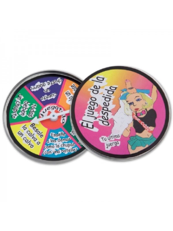 Es un juego de ruleta para despedidas de soltera que va en una CAJITA DE CARTON MUY DIVERTIDA y consite en girar la ruleta con fuerza y seguir las instruciones que señale para pasar un buen rato divertido.