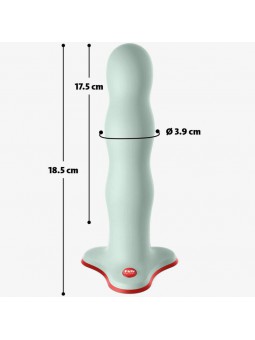 Claro, tiene un eje impresionante y curvas suaves, pero la gran idea detrás de nuestro consolador con correa Bouncer es invisible a la vista: tres bolas con peso ruedan dentro de él con cada movimiento. La sensación que produce es extremadamente buena. Algo más que te hará sentir bien: como todos nuestros consoladores, Bouncer no se fabrica en el otro lado del mundo, sino en Bremen. Está fabricado 100% con materiales respetuosos con el cuerpo y fabricado principalmente a mano. Dos detalles de diseño (una base roja y un botón con logotipo metálico) indican nuestra calidad artesanal.