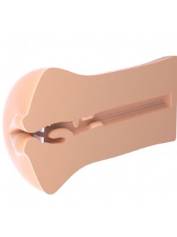 Deslízate entre esos labios deliciosos, pasa por la lengua flexible y los dientes realistas hacia la garganta texturizada que siempre está abierta y lista para tragar tu polla dura como una roca. Ambas filas de dientes provocadores acarician tu eje, mientras que el cómodo túnel con su extremo cerrado te ordeñará hasta dejarlo seco cada vez.