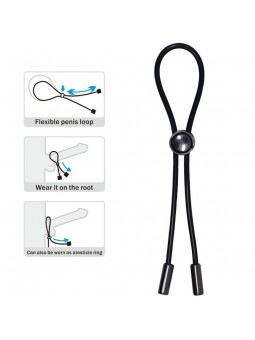 El bucle para el pene está controlado por una perla sintética para que pueda colocarse sobre el pene y los testículos. Puedes ajustar individualmente el diámetro al tamaño del pene. De esta manera, la intensidad del efecto de restricción del flujo sanguíneo se puede ajustar según los deseos personales.