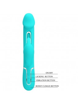 Este vibrador de conejo recargable está dotado de dos motores que puedes controlar para brindarte combinaciones completas de placeres que te dejarán sin aliento. El poderoso conejo que adorna el brazo del clítoris hace cosquillas y provoca tu punto sensible como ninguna otra cosa. La lengüeta oscilante añadida en el medio del eje del vibrador te proporciona una sensación adicional durante el juego e incluso hay un botón de clímax especial para impulsar todos los motores a su configuración más potente para un viaje verdaderamente emocionante. ¡Recarga la potencia de tu vibrador con el cable de carga magnético, que se coloca por sí solo para brindar la mejor experiencia fácil de usar!