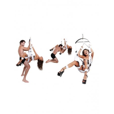 Increible arnés Fantasy Bondage Swing White que apoya la espalda o el pecho sujetando las piernas y manos desde los tobillos y muñecas, tiene la posibilidad de adquirir numerosas posiciones con facilidad y comodidad, pudiendo probar posturas imposibles.