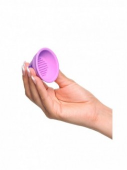 Ella ahuecó su pecho y colocó el vibrador de pezones Suck-Her en su sensible pezón. Las delicadas protuberancias de placer le hicieron cosquillas en su sensible piel mientras presionaba suavemente la taza de silicona para crear una ligera succión. Ah, el Suck-Her cogió sus pezones con pasión y a ella se le escuchó jadear.