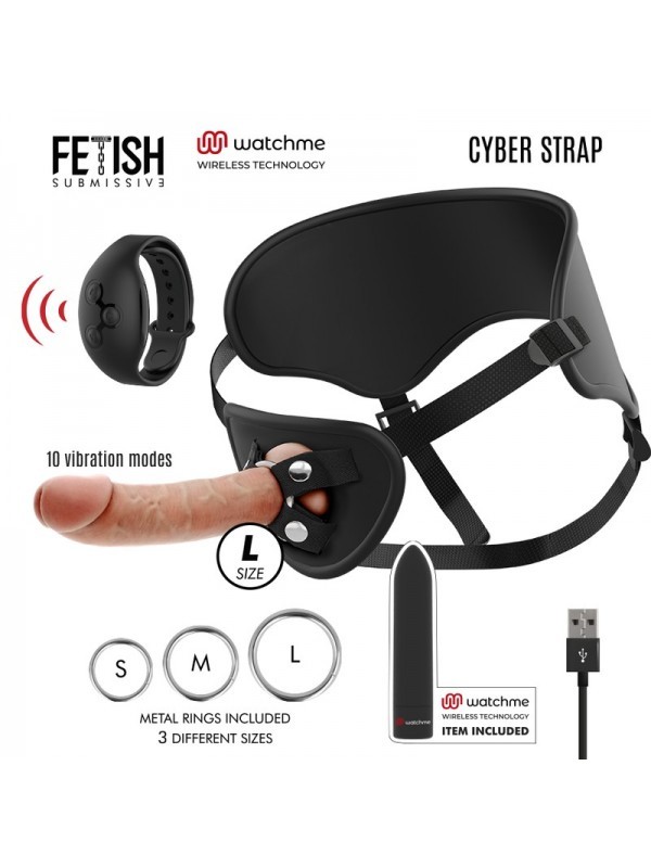Este modelo cyberstrap es más avanzado, incluye un vibrador control remoto que se acciona simultáneamente con el dildo proporcionando vibración a ambas personas. El vibrador se introduce dentro del propio arnés justo en la zona sensitiva vaginal.