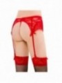 QUEEN LINGERIE THONG WITH LACE GARTER BELT - RED S/M