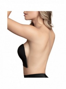 El sujetador de estilo U ofrece una solución impecable para un corte bajo o escotada.  El sujetador de estilo U levanta y realza los pechos para esos escotes profundos. El soporte adhesivo adicional en la base del sujetador está diseñado para aumentar la comodidad y la fiabilidad