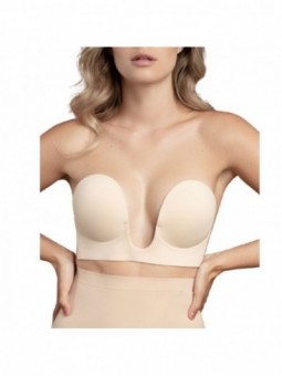 El sujetador de estilo U ofrece una solución impecable para un corte bajo o escotada.  El sujetador de estilo U levanta y realza los pechos para esos escotes profundos. El soporte adhesivo adicional en la base del sujetador está diseñado para aumentar la comodidad y la fiabilidad