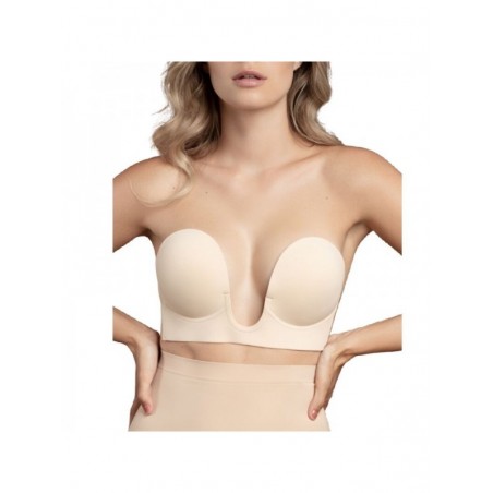 El sujetador de estilo U ofrece una solución impecable para un corte bajo o escotada. El sujetador de estilo U levanta y realza los pechos para esos escotes profundos. El soporte adhesivo adicional en la base del sujetador está diseñado para aumentar la comodidad y la fiabilidad