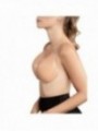 Despeja tu piel de cualquier aceite y crema. Una vez hecho esto, seque la piel con una toalla. Retire la película protectora de la copa y de la correa transparente. Voltea la copa hacia afuera mientras sostiene la cinta transparente por su extremo con una mano. Coloque la taza en el ángulo de pecho deseado y presione suavemente los bordes de la taza con las yemas de los dedos. A continuación, tire de la correa transparente en dirección ascendente sobre el hombro. Cuando se logre la posición deseada, pegue la correa a la piel. Repita el mismo procedimiento con la otra mama. Presione ambas tazas firmemente sobre los senos para obtener un efecto adhesivo óptimo.