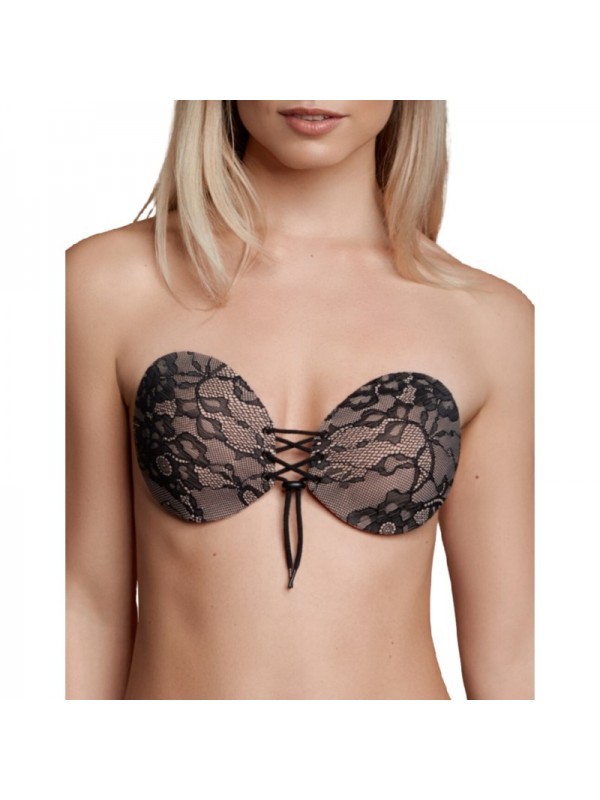 El sujetador round lace-it proporciona un escote mejorado y un soporte sin tirantas óptimo. Sin costuras e invisibles debajo de la ropa. Las copas adhesivas son fáciles de aplicar y el cierre de la corbata delantera permite ajustar el posicionamiento. Cuanto más apretado es el cierre, más efecto de escote. El sujetador round lace-it es su solución ideal para cualquier atuendo sin tirantes y sin espalda. El sujetador round lace-it se puede usar hasta 25 veces