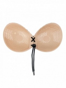 Despeja tu piel de cualquier aceite y crema. Una vez hecho esto, seque la piel con una toalla. Afloje el cierre frontal del sujetador de encaje redondo y retire la película protectora. Después, coloca las tazas en tus pechos. Presione suavemente las tazas adhesivas sobre la piel para suavizar y garantizar un soporte óptimo. Tire hacia abajo en ambos cordones juntos mientras desliza el cierre delantero hacia arriba.