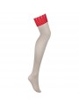 Dale vida a tu estilismo con un accesorio rebelde. Estas medias color nude y ligeramente transparentes adelgazarán perfectamente tus piernas. El ribete de encaje de color rojo intenso te añadirá atractivo sexual, despertará tu imaginación y te hará sentir llena de energía femenina.