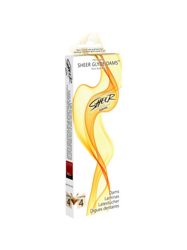 Sheer Glyde Dams son lamimas sedosas  y finas de látex de 25cm x 15cm especialmente diseñadas como barrera para el uso del sexo oral.