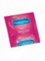 Los condones Pasante Regular tienen una ligera forma cónica para una sensación natural. Suave, de color natural y con punta de tetina.