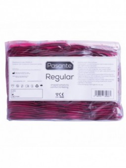 Los condones Pasante Regular tienen una ligera forma cónica para una sensación natural. Suave, de color natural y con punta de tetina.