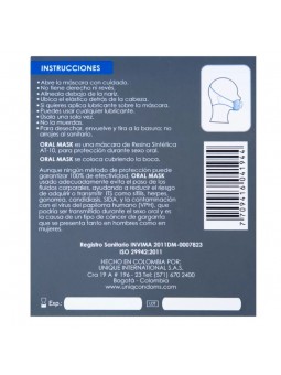 Máscara de resina sintética AT-10 para protección durante el sexo oral. El Oral mask usado adecuadamente evita el paso de fluidos corporales, ayudando a reducir el riesgo de adquirir o transmitir ITS como sífilis, herpes, gonorrea, candidiásis, VIH y el virus del papiloma humano (VPH).
